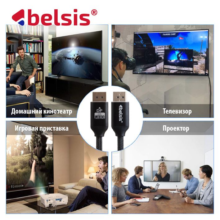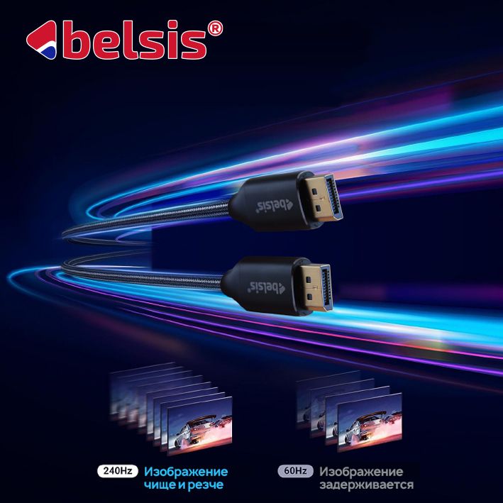 Кабель DisplayPort 1.4 Belsis, бескислородная медь, металлический разъём, нейлоновая оплётка, 1,8 метра, чёрный BW8819<br/><br/>Кабель Дисплей порт подключает новейшие компьютеры и мониторы для расширения рабочего пространства и конфигурации с несколькими мониторами.<br/><br/>►【Воспользуйтесь новейшими функциями DisplayPort 1.4】Кабель Belsis 8K DP 1.4 поддерживает пропускную способность HBR3 32,4 Гбит/с для видео 8K,...