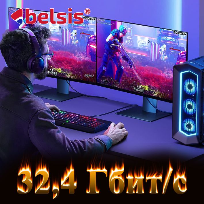 Кабель Belsis 8K DP 1.4 поддерживает пропускную способность HBR3 32,4 Гбит/с для видео 8K, c прямой коррекции ошибок FEC и 32-канальным аудио для получения высококачественного звука. Обеспечивает передачу 7.1, 5.1 или 2-канального звука без сжатия, частота дискретизации звука до 1536 кГц. Поддерживает высокое разрешение 8K (7680x4320) при 60 Гц, 5K (5120x2880) при 60 Гц, 4K Ultra HD (3840x2160) при 144 Гц, 2K при 240 Гц, 1080P (Full HD) при 240 Гц и динамический HDR и HDCP 2.2. Обратная совместимость с DisplayPort 1.3/1.2/1.1 и т.д. Он также полностью поддерживает FreeSync и G-Sync.