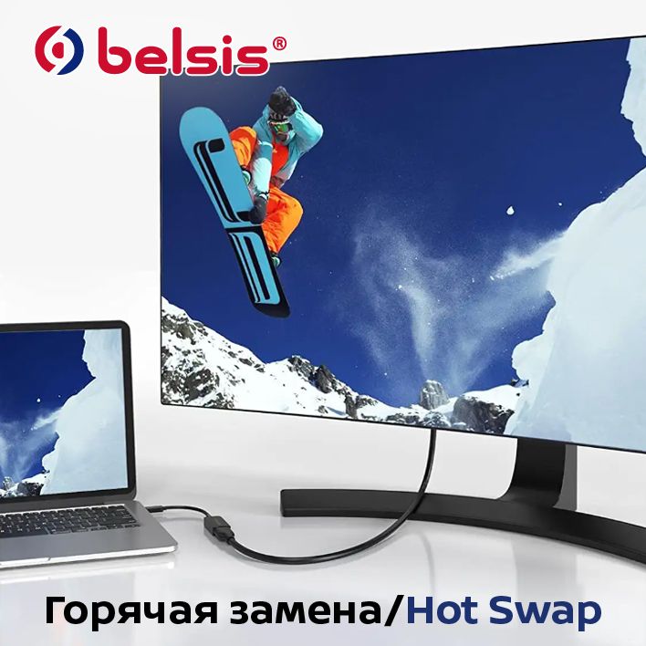 Конвертер USB Type C- HDMI позволяет отключать или подключать электронное оборудование во время работы без выключения питания и остановки (HotPlug), а также переподключать устройства (Hot Swap).
